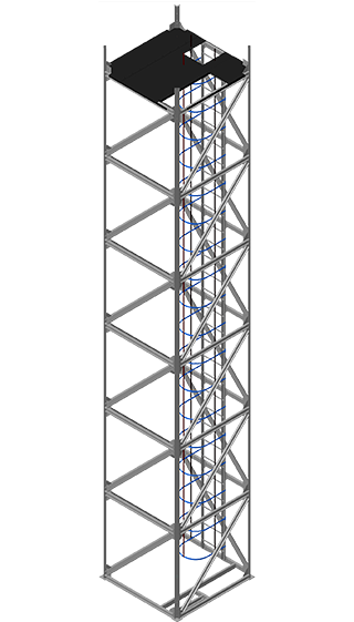 Норийная вышка ООО «РЕМЛИТМАШ» – вертикальная металлическая конструкция, из оцинкованных профилей, предназначенная для укрепления (опоры) нории ввиду оказываемых на нее различных нагрузок, а также для ее обслуживания. Для этого в верхней части вышки располагается площадка для обслуживания головы нории. Высота несущей вышки нории зависит от высоты самой нории.Выполнены из оцинкованных профилей высокой прочности на болтовых соединениях. Конструкция включает лестницу с ограждениями и промежуточными площадками для отдыха. Есть конструктивные решения для разных типов ковшовых элеваторов (с возможностью установки до 3 агрегатов).